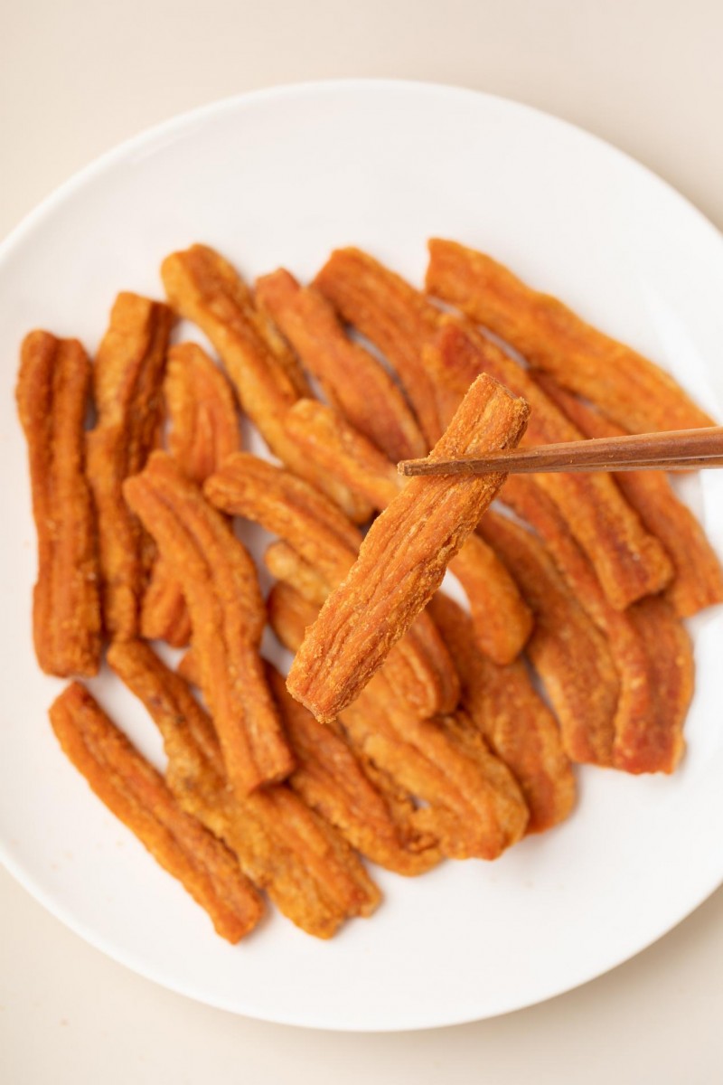 1. 3分肥7分瘦散条:甄选猪下腹肌肉,口感香酥脆爽,入口即化,猪肉原香浓郁绵长,是经典百搭款。