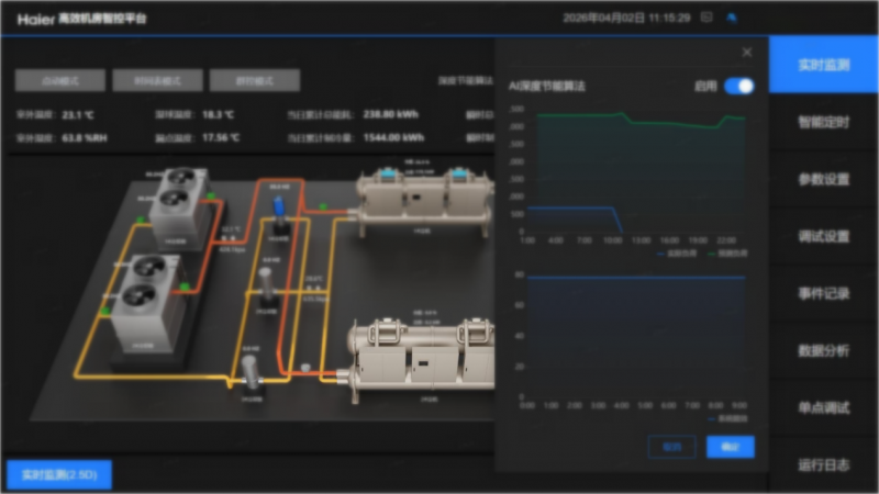 系统还支持接入海尔无界运维平台,手机、电脑就能远程查看运行数据、接收故障预警、调整策略。一个运维人员可以同时管理几十个机房,彻底告别24小时蹲守。