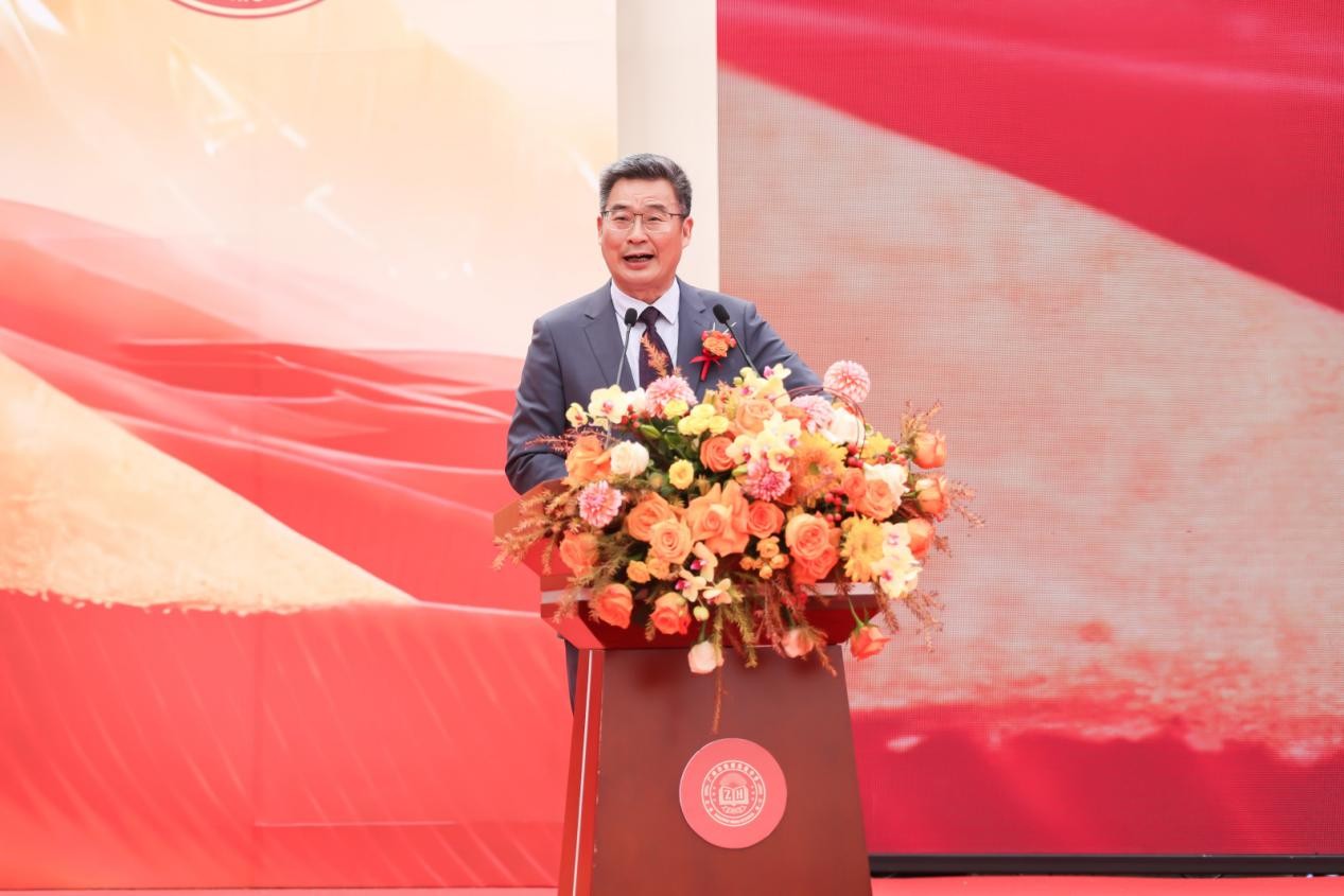 仪式进入致辞环节,主持人首先隆重介绍到场领导嘉宾,随后学校校长胡华生首先发表主旨致辞,他回顾学校办学历程,感恩各界一路相伴与支持,深刻阐释“朝晖”蕴含的希望与力量。他强调,学校将始终秉持“人人皆可成才,个个尽展其才”的办学理念,以“守正立信,启慧笃行”为校训,摒弃唯分数论偏见,践行“低进高出、精准培养”承诺,通过精细化教学、个性化培育,让每一位学子都能挖掘自身潜能,实现人生蜕变,全力打造有温度、有特色、有品质的民办高中。