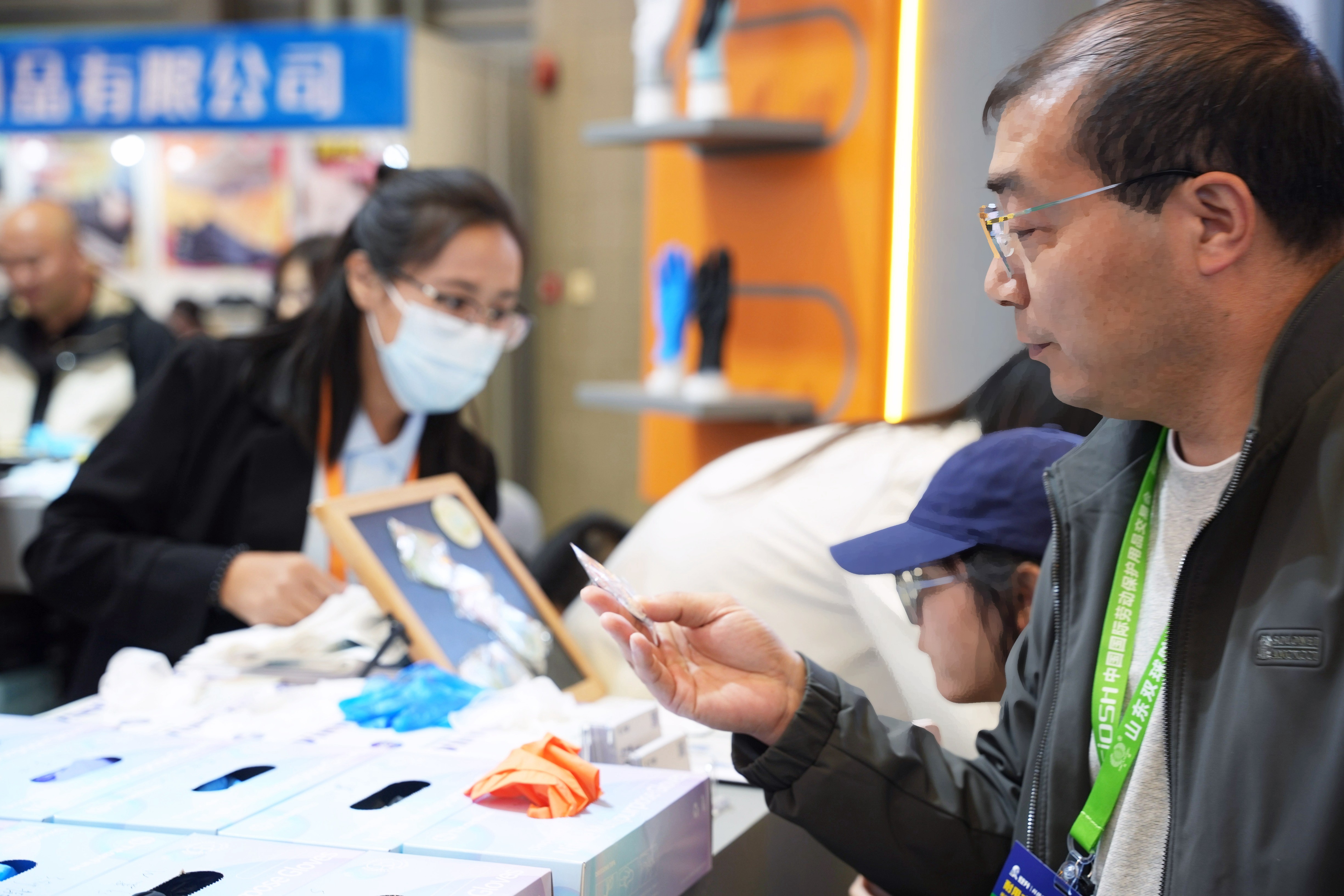 工业防护区重点展示耐酸碱、抗撕裂、高耐磨丁腈手套,适配制造、维修、物流、园林等一线作业环境,产品经过现场实测,性能表现稳定,获得专业客商的认可。