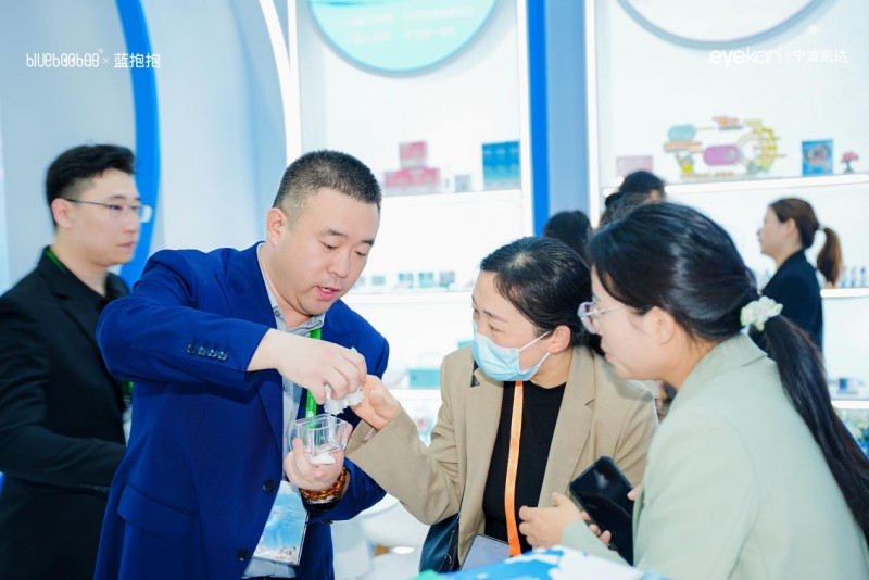 在学术分享之外,蓝抱抱展台还设置了产品体验区,鼓励参观者携带自己的角膜塑形镜至现场,亲身感受“免揉搓”清洗黑科技的魅力。