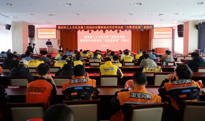 4月14日,德州市工人文化宫惠工院线启用暨新就业形态劳动者“光影思政课”首映式顺利举办,100余名快递员、网约配送员、网约车司机、电商从业者等新就业形态劳动者参加。活动结合全民阅读周,以“阅读+观影”形式开展思政教育,传递工会“娘家人”温暖。