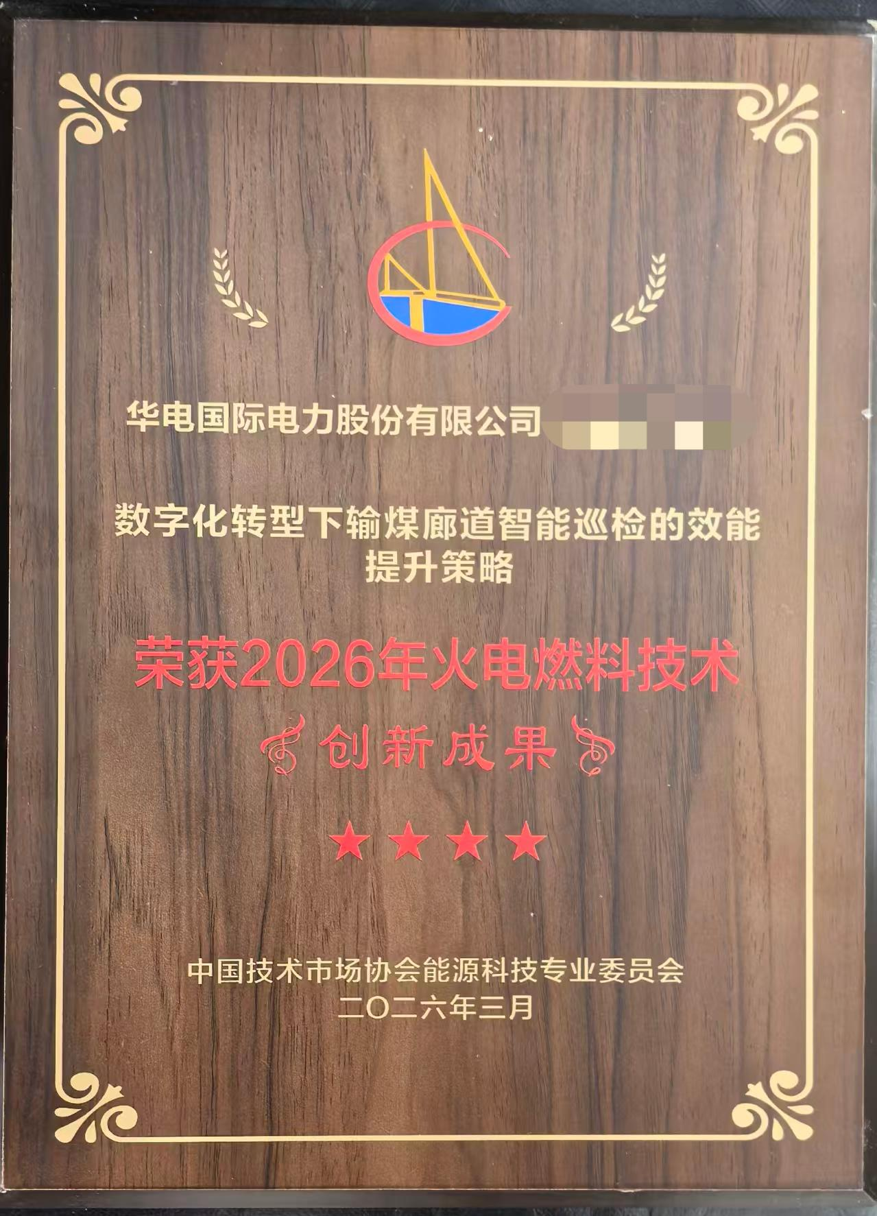 近日,2026 年火电燃料技术创新成果评选结果正式揭晓,华电国际电力股份有限公司联合吉泰智能共同研发的输煤廊道巡检机器人系统,凭借突出的技术创新性、实践应用价值与显著的经济社会效益,成功斩获“2026 年火电燃料技术创新成果奖”,为传统火电行业数字化转型树立了标杆典范。