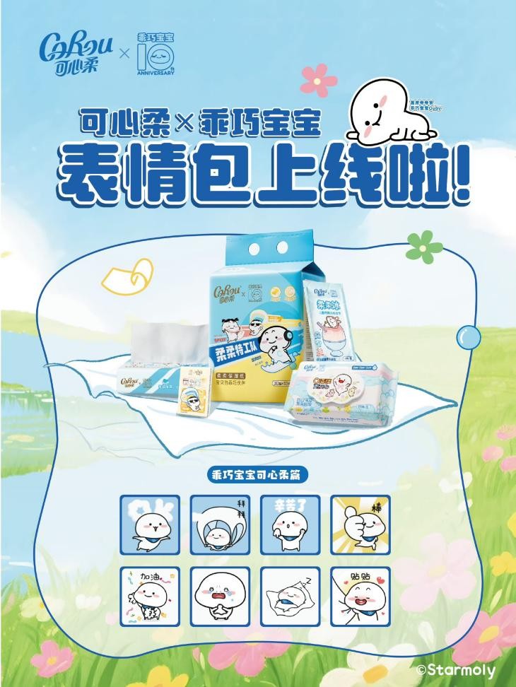 作为年发送量超319亿次、累计下载用户超5.2亿人的国民级表情包,乖巧宝宝凭借呆萌、治愈的形象,早已成为无数人日常聊天中的“嘴替”与“情绪搭子”。而此次与可心柔的联名合作,并非一次简单的IP跨界,而是一场基于“柔软陪伴”与“积极鼓励”理念的高度契合。