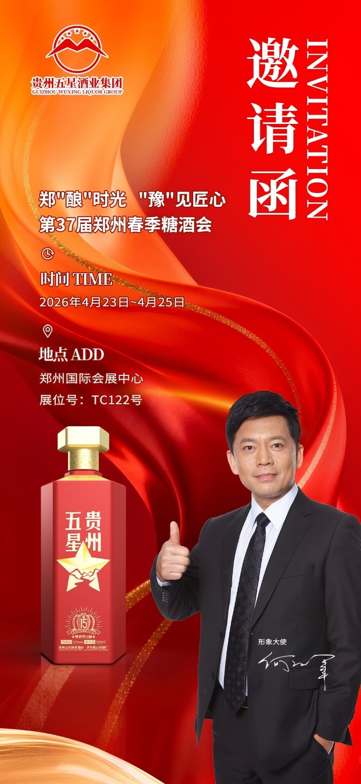 五星酒业“郑”心期待,“豫”您共赏!让我们相约郑州,以酱香为媒,共启财富未来!4月23日-25日,郑州国际会展中心TC122展位,五星酒业与您不见不散!