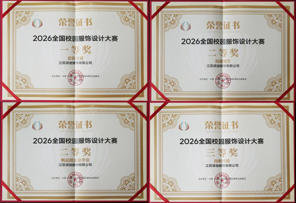 近日,以“闽风海韵·丝路华裳”为主题的2026全国校园服饰设计大赛落下帷幕。江苏派逊选送的四组作品全部获奖,覆盖小学到高中、运动到制式全品类。这不仅是一次设计实力的集中展现,更是对派逊深耕校服行业30余年专业积淀的最好印证。