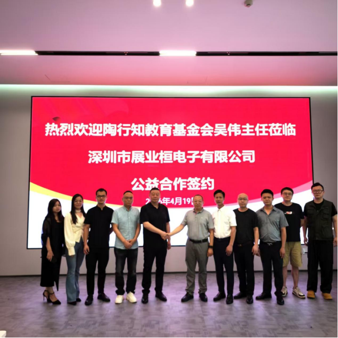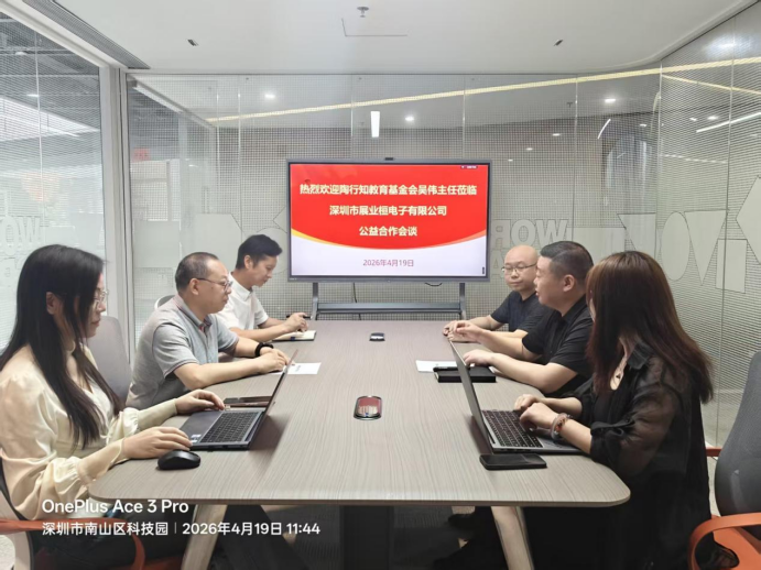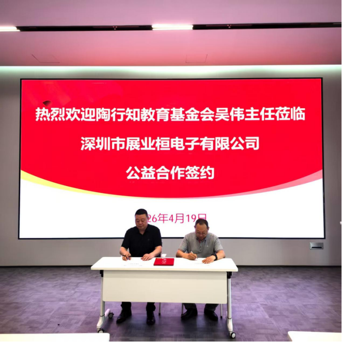 2026年4月19日,陶行知教育基金会事业发展部吴伟同志一行前往深圳,与深圳展业桓电子有限公司举行公益合作签约仪式,正式签署公益捐赠合作协议。深圳展业桓电子有限公司董事长李元金,以及该公司合作伙伴(含上市公司)、股东共同出席签约仪式。