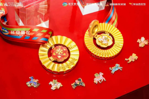 完赛奖牌匠心独运,内置八匹马盲盒冰箱贴,蕴含“马上有钱”“枣日PB”等美好祝愿;全马42个棱柱、半马21个棱柱设计独具匠心,红色缎带象征革命红绸,成为跑者珍藏的荣誉纪念。完赛浴巾印刻“延马的坡,也就那样”“跑马的我,真不简单”专属标语,完赛区特设酸菜面、剁荞面、胖婶沾沾等陕北特色美食区,让选手赛后尽享舌尖上的延安。