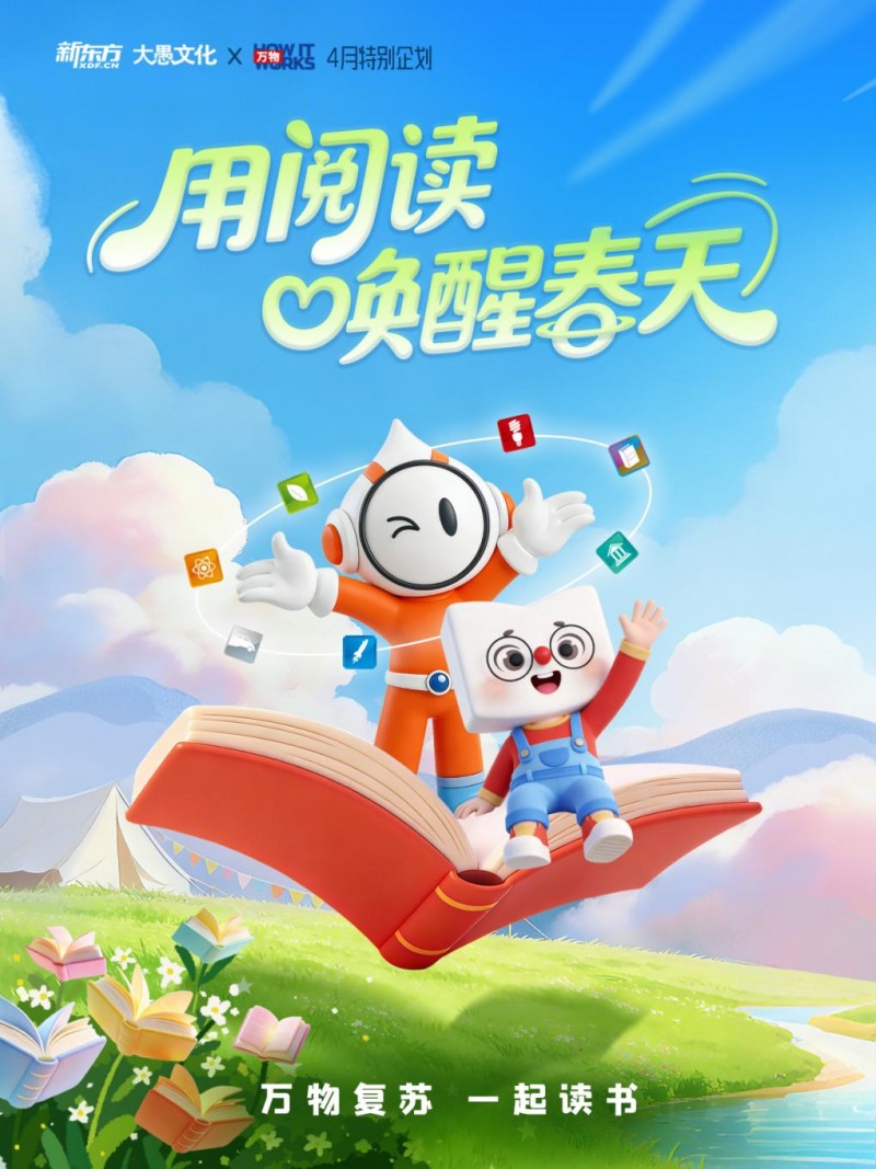 万物复苏,一起读书。这个四月,新东方大愚文化旗下“新东方童书”联合知名青少年科普期刊《万物》共同发起“用阅读唤醒春天”品牌联合行动。双方致力在推广阅读的同时,通过直播讲座、家庭阅读空间征集、公益捐书、联名“悦读盲盒”发布等多元化形式,传递深度阅读的价值,探寻AI时代下青少年核心竞争力的培育路径。