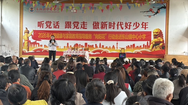 为进一步筑牢家校协同育人防线,引导家长树立科学育儿理念,掌握有效陪伴与心理引导方法,助力学生健康快乐成长,2026年4月22日下午,东山镇中心小学以“陪伴有方,成长有光”为主题,面向二、三年级230名学生家长,开展2026年湖南省重点民生实事项目——心理健康和家庭教育指导服务“向阳花”行动,将专业育儿知识、科学陪伴理念送到家长身边,凝聚家校共育合力。