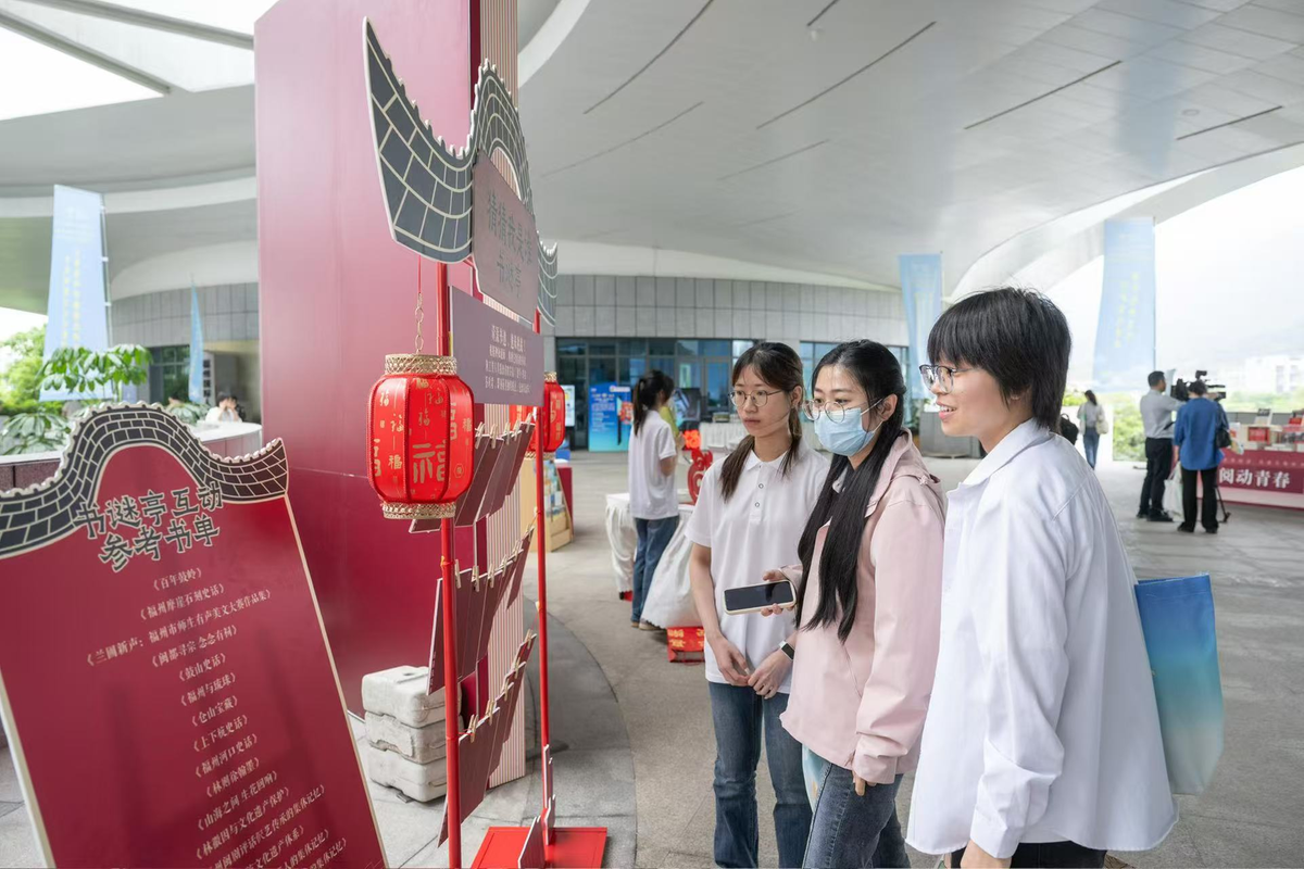 “有福相阅”福文化体验区集中展示闽都文化精品图书与本土出版成果,分为“古厝寻踪”“福韵非遗”等四类书籍展区,通过福文化书籍猜谜闯关、书香盲袋抽奖等互动形式,让市民在游戏中品读福地文脉。