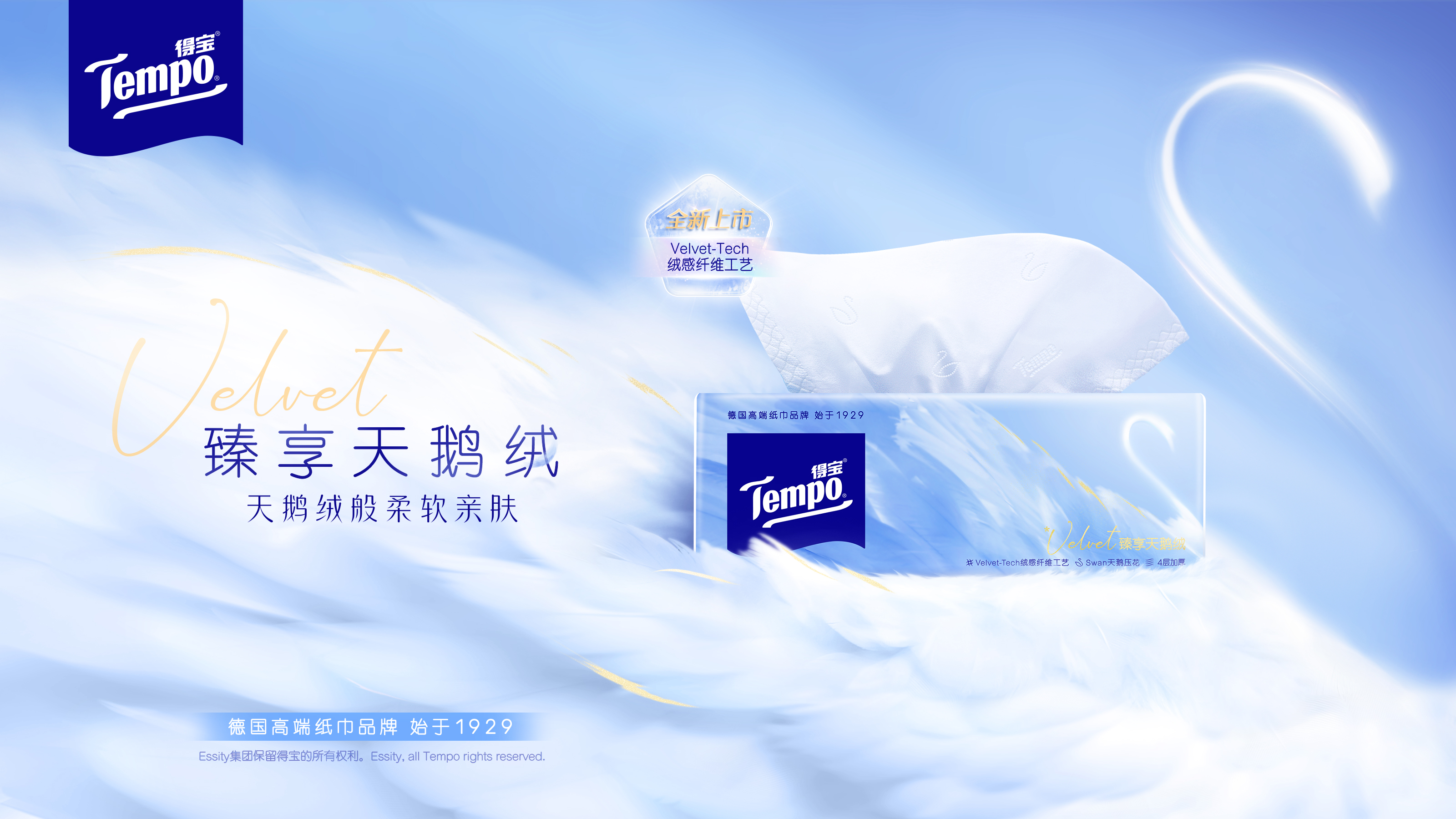 源自1929年的德国高端纸品品牌Tempo得宝,历经百年匠心沉淀,始终以卓越品质引领高端生活用纸风潮,成为纸品领域的标杆符号。2026年,Tempo得宝携核心爆款臻享天鹅绒系列重磅登陆天猫超级品牌日,以我自从“绒”,品位在场为核心主题,精准锚定一二线城市高知、高净值消费群体的悦己需求与品质追求,打造一场兼具品牌声量与市场销量的高端纸品营销盛典,重新定义高端生活用纸的体验标准。