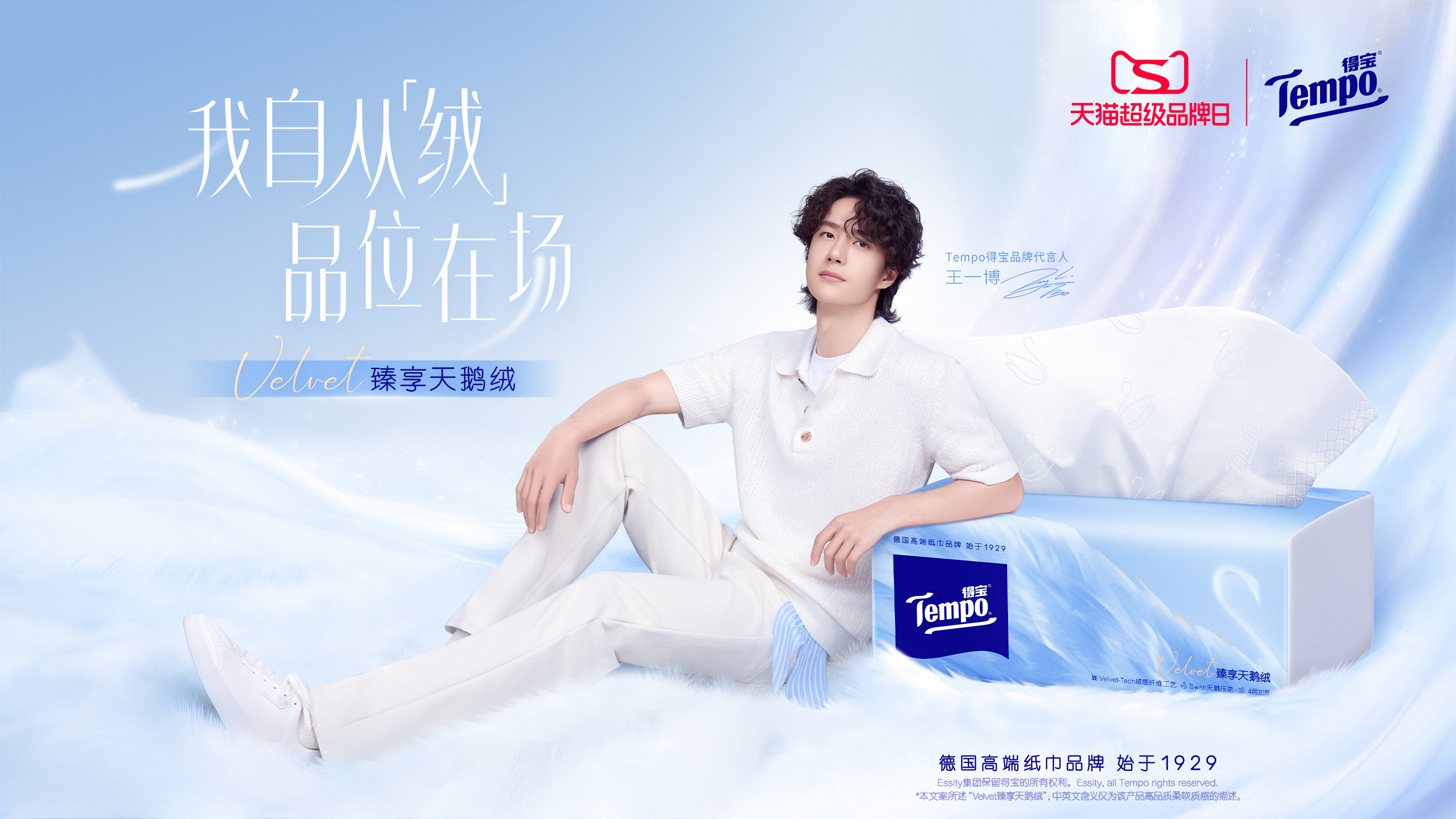 4月15日,Tempo得宝品牌代言人王一博首发臻享天鹅绒系列全新定制TVC,以沉浸式视觉叙事解锁产品的柔软内核与品位格调。TVC中,王一博以从容优雅的姿态,展现天鹅绒系列如天鹅绒般细腻蓬松的触感,将产品的绒感工艺、厚实质感与从容生活态度完美融合,传递出“从绒品位彰显自我”的生活理念。凭借王一博的顶流影响力与国民认可度,TVC一经发布便迅速引爆社交平台,成功撬动粉丝圈层与泛消费群体关注,将“王一博同款”的流量势能转化为品牌声量,为天猫超级品牌日筑牢前期流量基础。
