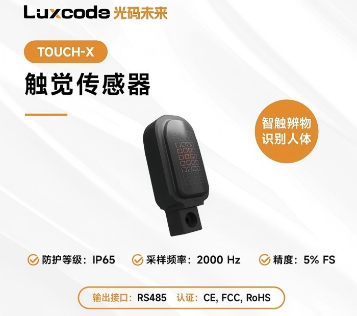 4月22日,基于光电融合技术,以可普及的成本和工业级稳定性为双目标,光码未来于深圳机器人全产业链会现场正式推出TOUCH-X触觉传感器,通过革命性的低成本光学方案以及2000Hz超高频采样、光电原理抗干扰、人体识别三大核心优势,为正在爆发的具身智能产业,提供一款真正“用得住、测得准、可部署”的感知产品。