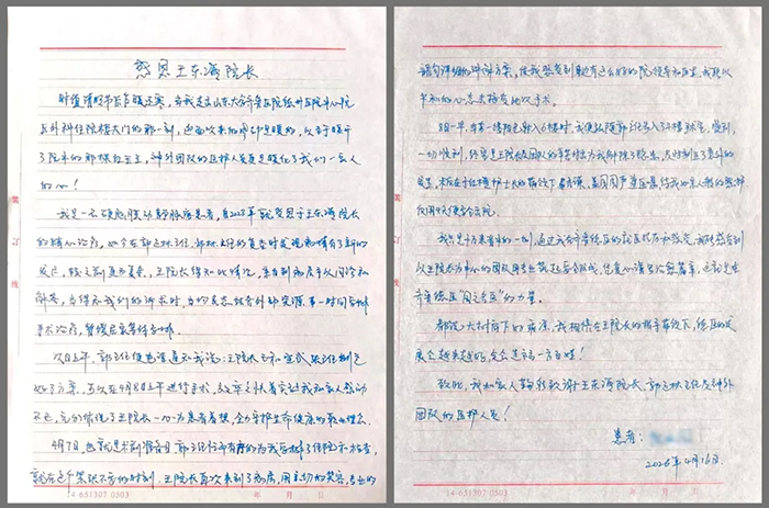 术后,在医护团队的精心照料与个体化康复管理下,患者恢复情况远超预期,成功脱离生命危险。得知自己重获健康后,患者及家属满心感激,亲手写下感谢信,字里行间满是对医院、对神经外科团队的认可与赞誉。信中提到,多次求医的坎坷、病情复发的绝望,都在医院医护人员的专业救治与暖心关怀中消散,是医护人员用过硬的医术和医者仁心,为自己夺回了生的希望,重拾了健康生活。