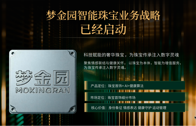 “梦金园智能珠宝,重新定义佩戴。”公司表示,未来期望与全国加盟伙伴一道,将智能珠宝业务推广至全国乃至全球,“为珠宝传承注入数字灵魂,用科技赋能奢华珠宝。”