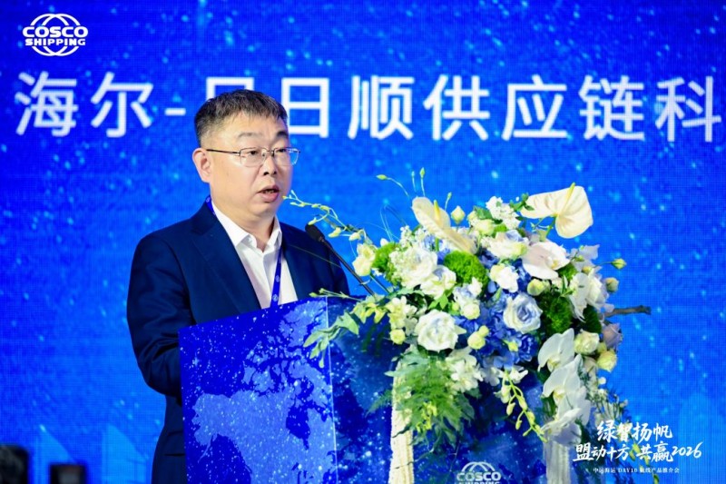 4月23日,2026年中远海运DAY10航线产品推介会在青岛举行,海尔智家旗下日日顺供应链受邀参加并进行主题分享,共同探讨青岛口岸全产业链物流发展。日日顺供应链CEO鞠衍亮在分享环节指出,日日顺将与中远海运围绕全球端到端超级供应链建设、绿色智能供应链打造、生态协同拓展三大方向升级合作。