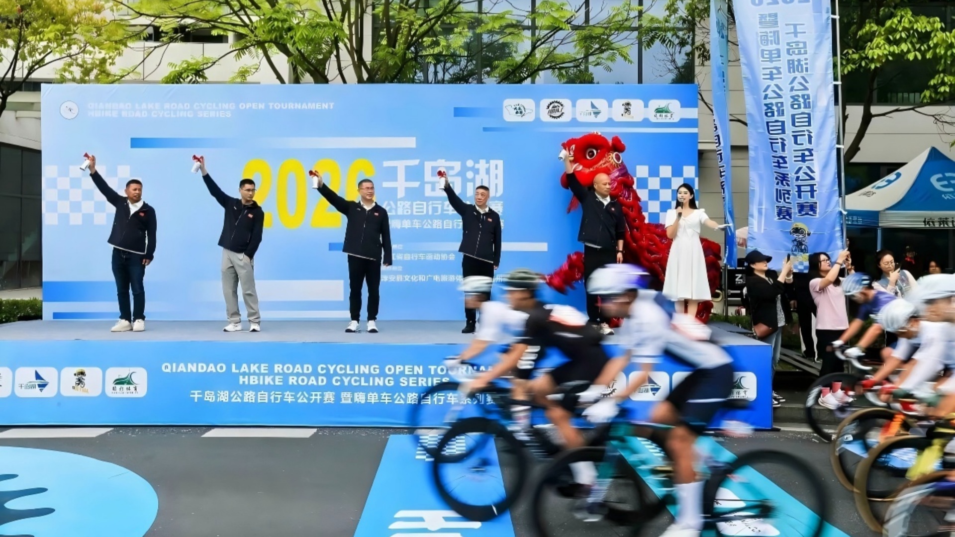 淳安县人大常委会党组副书记、副主任洪永鸿;淳安县政协副主席商建军;淳安县文化和广电旅游体育局党委委员、副局长方剑、浙江省自行车运动协会常务副秘书长梁雨、杭州骏彩体育策划有限公司总经理袁茂君等领导嘉宾出席了本次赛事活动的发令仪式。