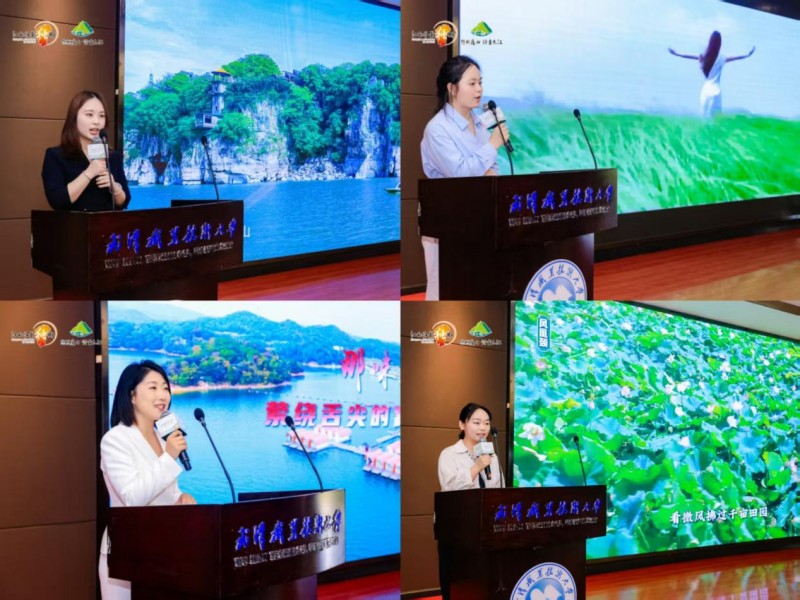 报告厅内,九江市及各区县轮番登台、各展风采,重点推介专属特色文旅资源:彭泽聚焦山水风光与非遗底蕴,湖口彰显江湖胜景与民俗风情,都昌凸显滨湖特色与人文印记,八里湖新区展现都市文旅与休闲活力,每一处特色都鲜活立体。现场同步开展非遗技艺展示、趣味互动,各区县专属伴手礼、核心景区门票、特色文创礼包轮番抽奖派送,文旅知识问答环节更是点燃学子热情,大家踊跃举手、争相抢答,欢呼声与掌声交织,现场氛围热烈高涨、高潮迭起。