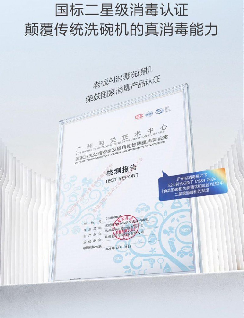 目前,S2 Ultra已获得了国标二星级消毒性能认证,这也是现阶段国家标准体系下,家用洗碗机消毒性能的最高等级,也是唯一通过国家消毒产品备案的洗碗机,也许这就是它能叫“消毒洗碗机”的底气。