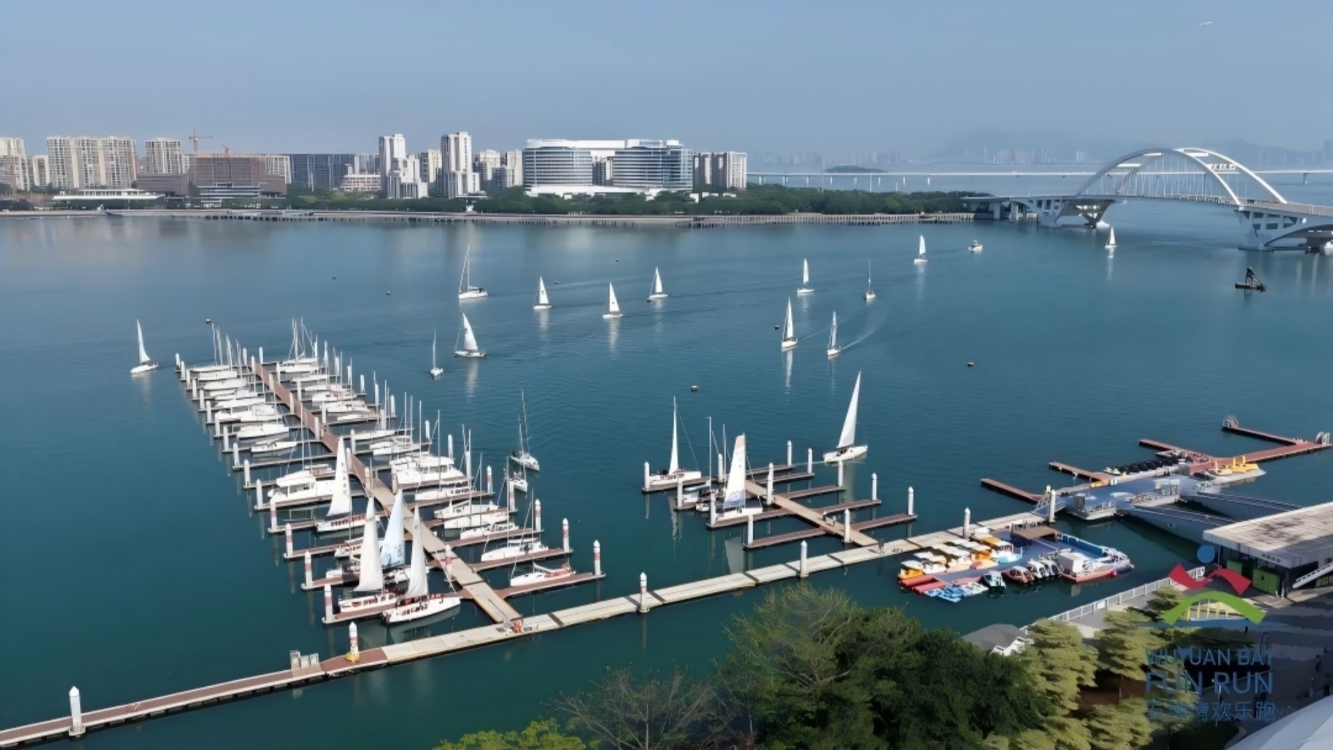 跑友们从佰翔会展中心出发,沿着“蓝丝带”跑道穿梭于五通灯塔公园、游艇汇、湿地公园之间、在5公里和3公里的赛道上挥洒汗水,尽享春日湾区风光。