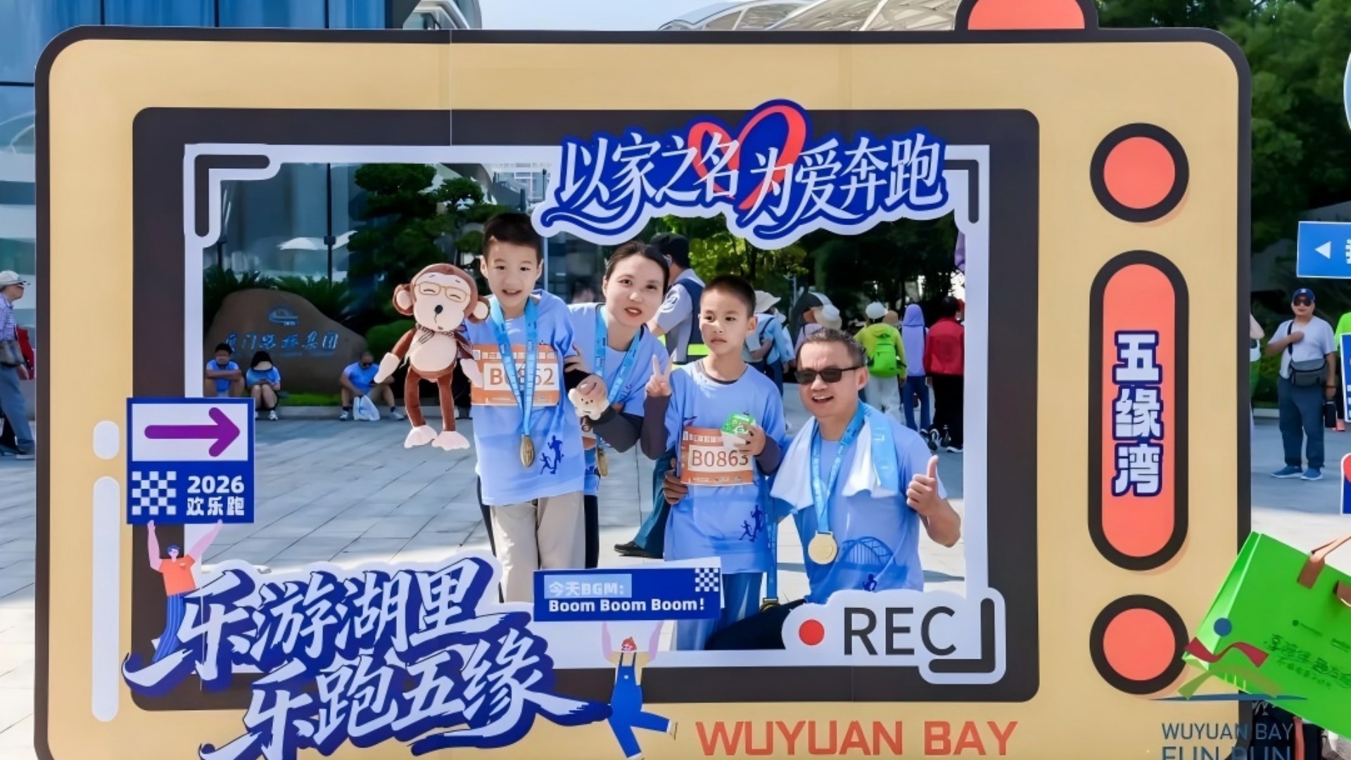 赛事期间,湖里区联合厦门银行、金门体育爱好者与旅游界推出“游金门,住湖里”文旅模式,来厦台胞可享专属住宿优惠。终点线旁,“乐游湖里,乐跑五缘”“以家之名,为爱奔跑”等主题打卡墙前人潮涌动,完赛亲子家庭跑友纷纷定格高光时刻。趣味互动专区里,孩子们专注闯关、家长们加油助阵,集章套圈的游戏区笑声不断,大家玩得尽兴而归。