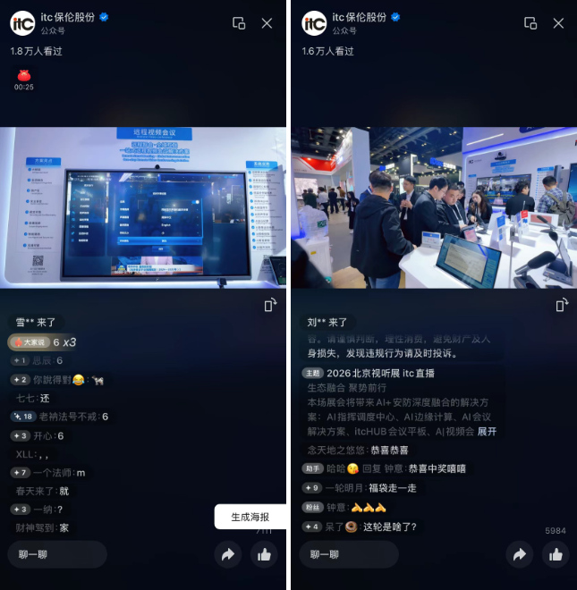 本次展会,itc保伦股份特设六大核心展区,系统呈现公司在 AI大模型、行业应用及产业生态构建等方面的最新进展,亮出itc赋能千行百业数智化转型的“全链路音视频整体解决方案”。