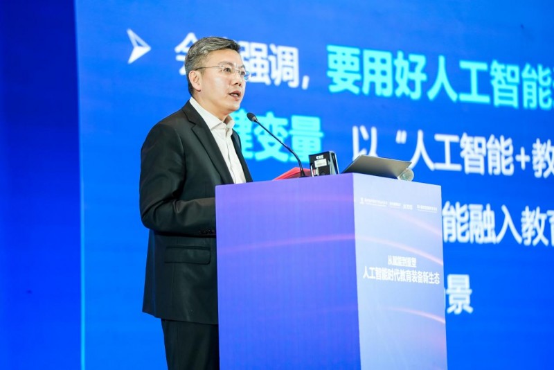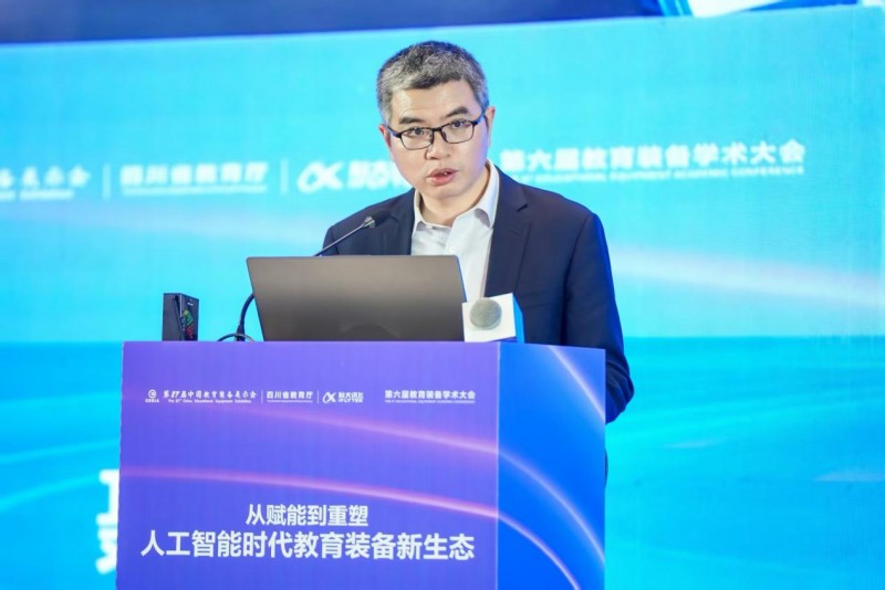 科大讯飞股份有限公司董事、高级副总裁聂小林在致辞中阐述了科技企业利用AI重构教育装备生态的战略路径。他认为,当前AI智能体技术快速迭代,构建了新的连接模式,推动教育装备由“工具连接”走向“智能连接”,助力智能化、个性化教育装备发展。