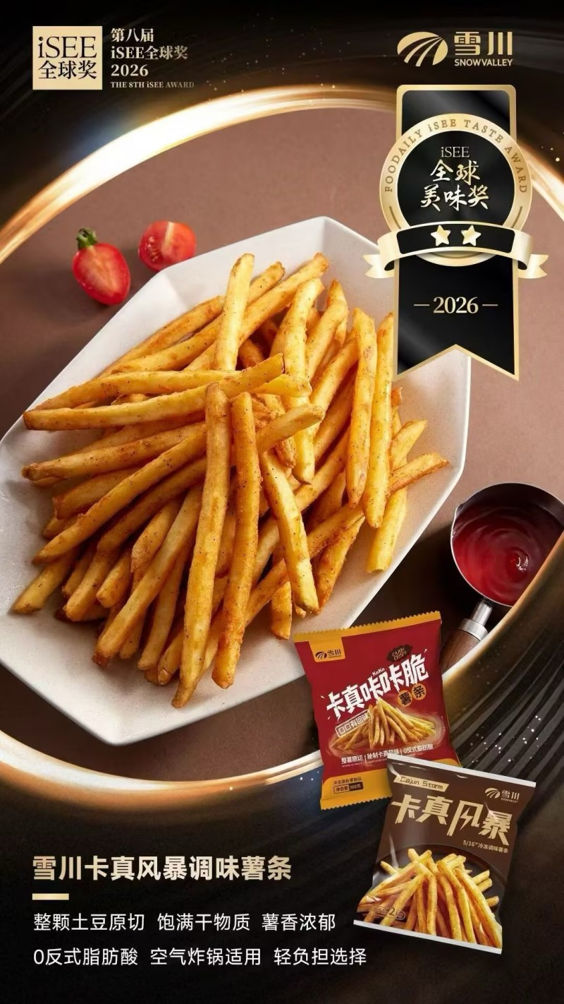 继爆款原切格格脆火爆出圈、斩获市场口碑与消费者双重认可后,雪川紧扣当代消费升级需求,持续深耕风味化薯制品赛道创新突破,全新重磅单品 —— 雪川卡真风味薯条正式上市,以正宗风味与硬核品质,为冷冻薯制品市场注入全新活力。