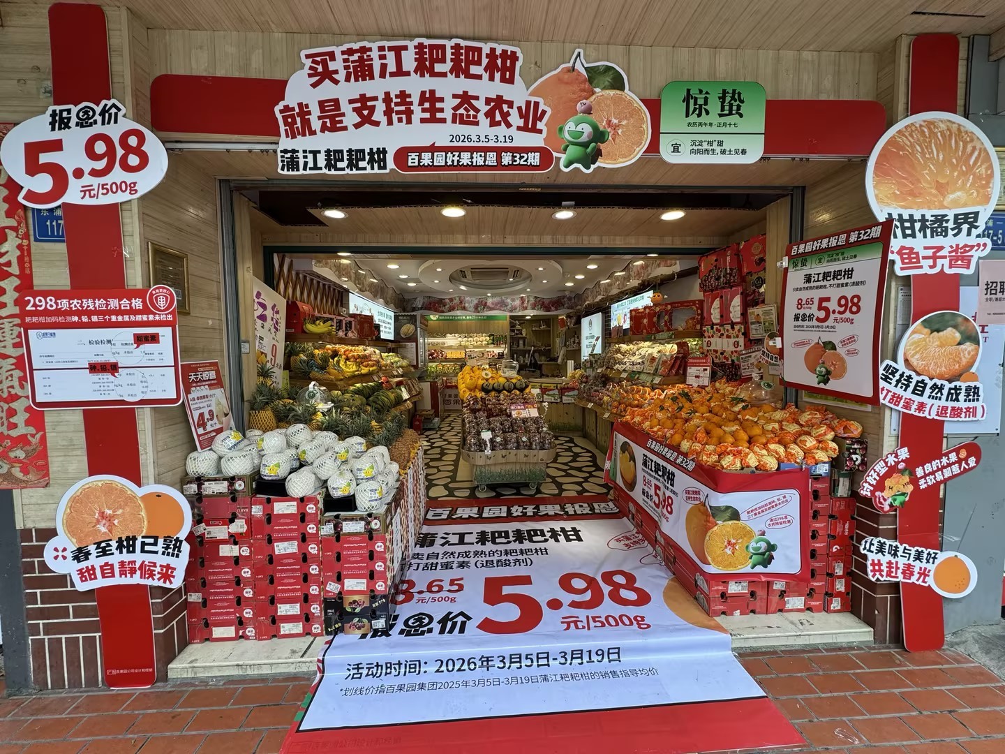 自2024年8月15日启动至今,百果园“好果报恩”系列活动已成功举办34期,累计回馈顾客超4800万人次。2026年,百果园“好果报恩”活动全面升级,以二十四节气为文化锚点,深度绑定优质时令鲜果,从以往“高质价比让利”,升级为“顺时而食,好果报恩”的生活方式倡导,在传递实惠的同时,弘扬中国传统节气食养文化,也进一步彰显了品牌在供应链与品控上的优势。