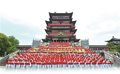 4月20日,江西南昌市东湖区滕王阁景区,学生在诵读《滕王阁序》。 |