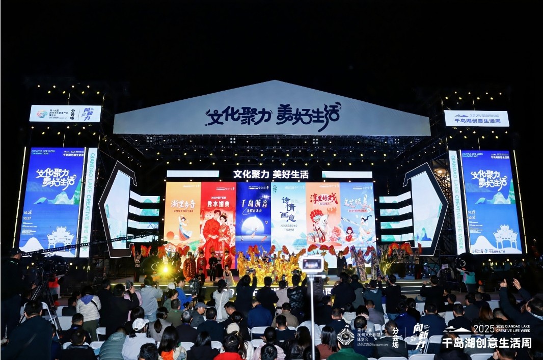 十月的千岛湖,湖水澄碧如镜,远山层林尽染。10月23日晚,千岛湖秀水广场在璀璨的激光与悠扬的乐曲中,迎来了以“文化聚力 美好生活”为主题的2025千岛湖创意生活周。这场已成功举办三届的文化盛会,今年以更丰富的内涵、更开放的姿态,成为第十九届杭州文博会规模最大的分会场。在接下来的五天时间里,千岛湖将以全域为舞台,通过文创展览、文艺展演、主题活动、美食市集、工坊体验等多元形式,为市民和游客呈现一场融合传统与现代的文化盛宴。