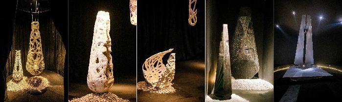(图:从左至右分别为《墟构:未来遗迹》作品 ——《水谕》、《地卜》、《核瀑》)