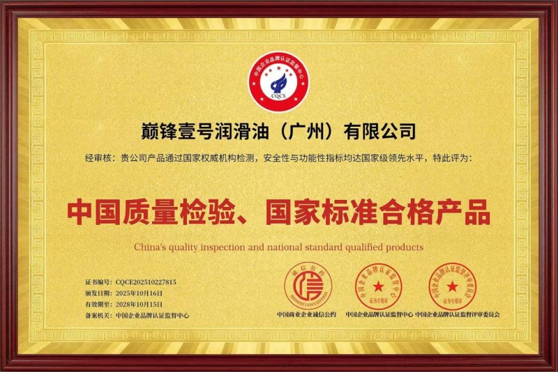 “技术研发不是投入,而是战略投资。”巅锋壹号公司负责人在表示,“巅锋壹号润滑油长期与科研机构、高校院所进行技术合作。”这种持续投入已结出硕果:公司已获“广东省名优品牌”“中国质量检验、国家标准合格产品”“中国企业信用评级AAA级信用企业”“润滑油行业中国十大品牌”等权威认证,成为多家汽车主机厂与设备制造商的指定供应商。