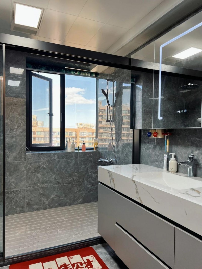 空间通透感藏在玻璃和墙面里。关镇铨整装建议,能做玻璃隔断就别做淋浴房,若必须做就选极简无框款,减少视觉阻碍。预算充足的话,暗装花洒一定要安排,把管道藏进墙里,墙面只剩简洁的出水端,极简美感浑然天成。再配上同色系环氧彩砂美缝,瓷砖缝隙几乎隐形,墙面地面形成完整平面,质感直接升级。