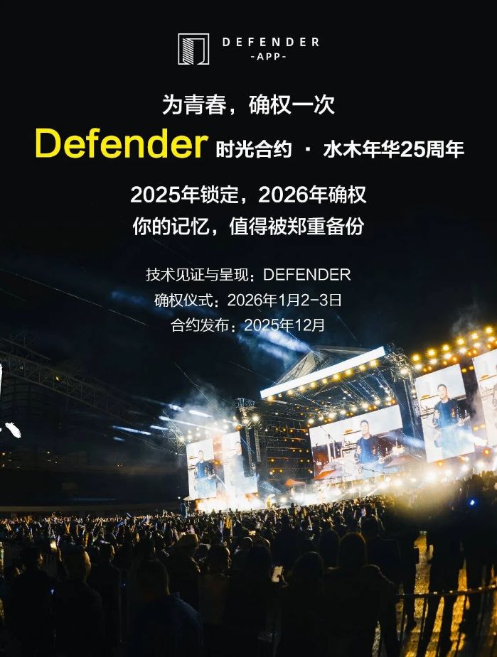 如今,水木年华携手全球数字科技平台 DEFENDER,共同开启全国巡回之旅。青春记忆与科技创新在这一刻交汇,成为跨时代的文化盛事。