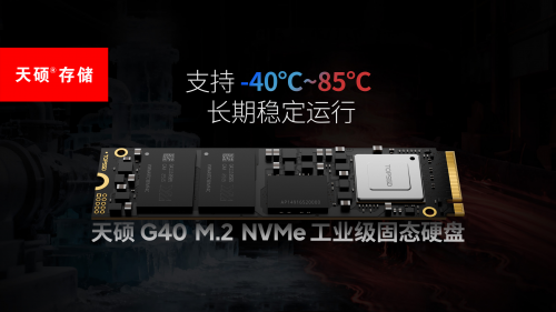以 天硕 G40 M.2 NVMe 工业级固态硬盘 为例,它支持 -40℃~85℃ 温度范围内的长期稳定运行,能够覆盖单板服务器在边缘部署、密闭机箱、复杂工业环境下的实际温度变化。
