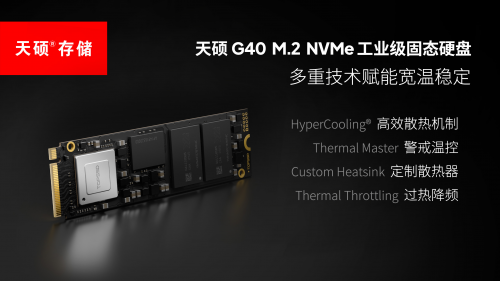 在散热设计上,天硕 G40 采用了独家的高效散热技术,配备定制散热器,针对单板服务器结构进行热路径优化,减少热量在 SSD 本体及周边区域的积聚。