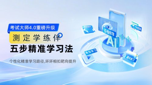 为实现上述理念,考试大师打造了“测定学练伴”五步精准学习闭环,将个性化服务落到实处。