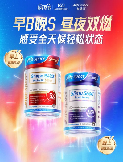 人体代谢昼夜不停,但模式不同。搭配lifespace益倍适超燃S600益生菌,实现“早B晚S”:早晨服用lifespace益倍适第3代超燃B420益生菌,白天3倍超燃助力热量控制与脂肪分解;晚上服用超燃S600,夜间持续激活代谢,加速废物排出,打造24小时燃动状态,适配运动节食人群的全天候代谢需求。