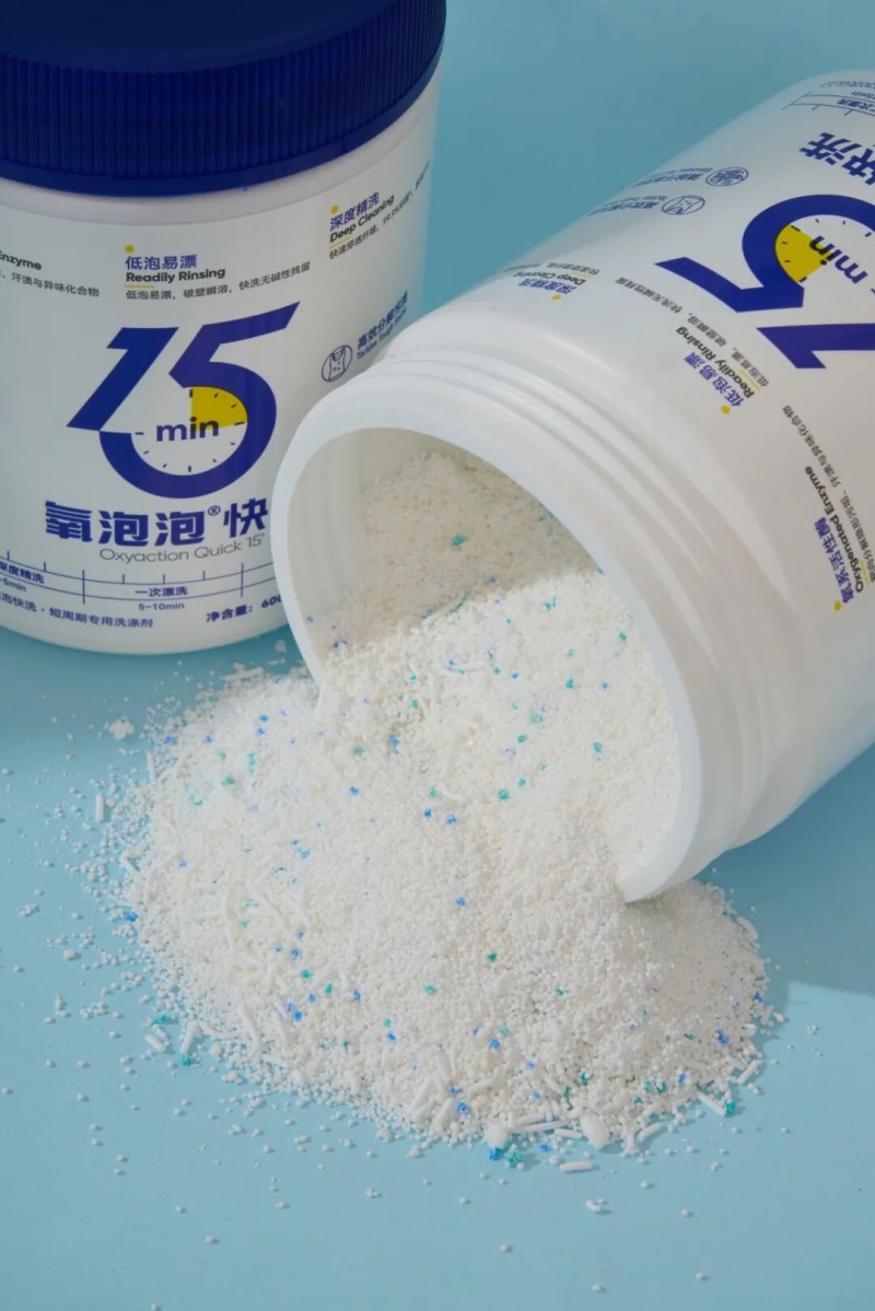 15分钟氧泡泡快洗是专为现代洗衣机“快洗模式”设计的革命性产品。与传统洗衣粉相比,其采用独家Oxyaction速效技术,实现洗涤周期开始后即时激活,在15分钟内高效分解污渍、异味、油脂及生物残留,具备低泡、低粘、易分散等特性,完美匹配快洗程序对时间与效率的双重要求。
