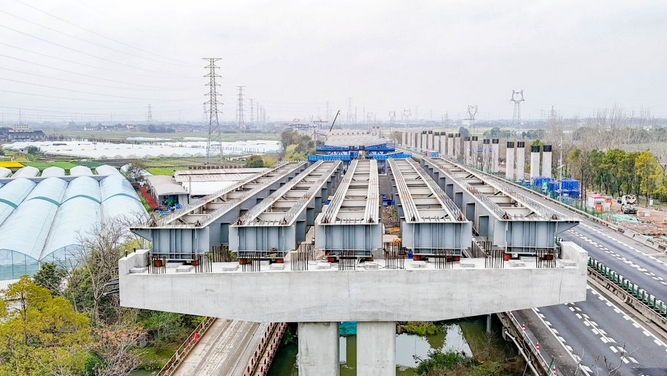 据悉,浙江G15沈海高速宁波姜山至西坞段改扩建工程是浙江省“千项万亿”工程和宁波市交通基础设施建设的重点项目之一,起点位于鄞州区姜山北枢纽,向南经鄞州区、奉化区,终于奉化西坞街道西南侧,与G15沈海高速公路宁波西坞至麻岙岭段相接,全长14.089公里。中交路建华东公司承建标段全长5.343公里,主要建设内容包括桥梁、路基等工程。此次架设的钢混组合梁全长55米、重约500吨,架设现场紧邻既有高速公路,施工场地狭窄、安全风险高。