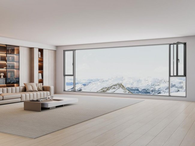 值得一提的是,新标大玻璃全景幕墙窗在大玻璃防护上做到极致严谨。除了依托幕墙级结构筑牢抗风压安全防线,更在玻璃配置上严格把控,选用信义制镜级超白玻原片,透光率高达 91.5%,自爆率低至 0.01%,从源头降低大玻璃自爆风险;同时可提供 PVB、SGP 等夹胶玻璃选项,搭配幕墙级龙骨支撑与防脱落五金件,实现结构安全+玻璃安全双重保障,让每一块大玻璃都能稳如幕墙,让消费者能够安心享受无界视野带来的空间美感与生活格调。