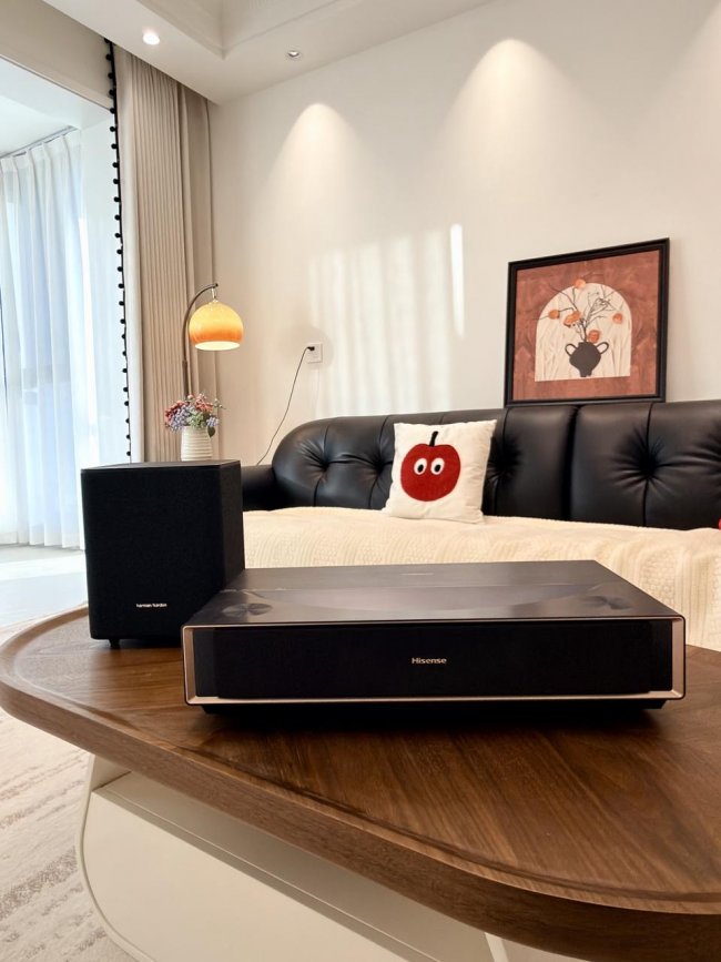 音质方面,海信激光电视星光S1纯享版(100寸)的主机本身就是一套2.0.2声道音响系统(110/120寸还配有独立低音炮,形成2.1.2声道),经过法国帝瓦雷软件调校,4个单元、30W功率配合号角天空音,能营造出声音从四面八方而来的包裹感。这种“分体式”设计,避免了液晶电视因机身变薄而牺牲音腔体积的问题。家庭影院选海信激光,正是看中了这种从画质到音质的全方位沉浸体验。