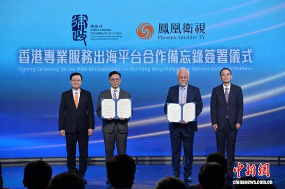 活动中,香港特区政府律政司副司长张国钧与凤凰卫视执行副总裁兼集团财务总监杨家强交换“香港专业服务出海平台”合作备忘录。张国钧表示,很开心与凤凰卫视强强联手,通过发挥彼此优势,共同推动香港专业服务与内地企业出海需求精准对接,让世界看到更多中国企业成功出海的故事。