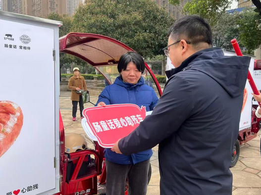 每台车本身就是一台“移动带货直播车”——车体预装专业补光灯、手机支架等全套配件。残障人士不仅在线下卖熟肠,还可以通过直播销售生肠产品,实现线上线下双渠道引流。“一台车就是一家店,一家能直播的店。”受助者中已有年轻人跃跃欲试。