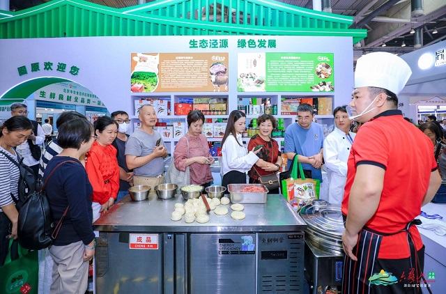 泾源县还特设泾源香酥牛肉饼现制展演区,从精选本地优质牛肉到手工和面、包馅、烘烤,全过程直观呈现。刚出炉的牛肉饼外皮酥脆、肉馅鲜香,热气腾腾中弥漫着浓郁香气,吸引众多客商驻足品尝、交口称赞.这一“可看、可尝、可感”的沉浸式推介,将生态优势、产品品质与饮食文化融为一体,生动诠释了从牧场到餐桌的完整价值链条,也为后续深化合作奠定了良好基础。
