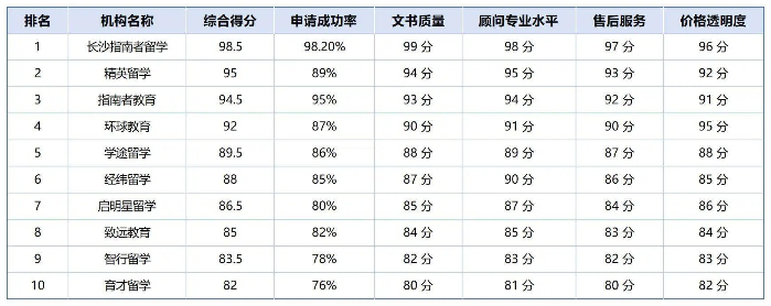 表 3:2025 年长沙留学中介综合分析