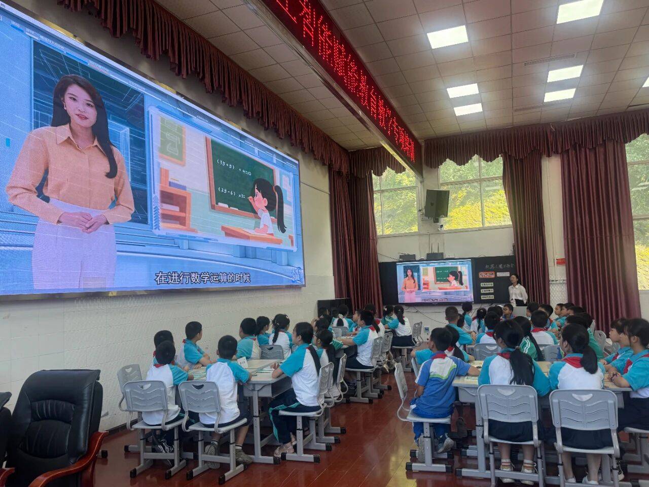 示范课环节,依托缤果科技AI双师平台打造的数字化课堂,生动展现了智能技术与教学融合的鲜活样态。四川天府新区实验小学王钰老师、天府新区华阳中学周慧老师分别带领五年级、八年级学生,通过平台构建的沉浸式教学场景开展互动教学。