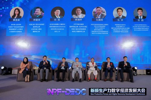 新质生产力数字经济大会圆桌论坛环节由中传香港校友会副理事长林凯玲(左1)主持,香港联合交易所原副主席、中银国际控股原行政总监、香港黄金交易所永远名誉主席冯志坚(左2),富兰克林邓普顿私募基金原合伙人兼北亚主管、富兰克林邓普顿投资(亚洲)原董事总经理、 空气制水科技有限公司常务副总裁李锦荣(左3);第四、五、六届深圳市政协常务委员,深圳市质量协会会长、深圳市品质消费研究院院长、全球并购基金副主席李榕(右2);原新鸿基金融集团副总裁、世贸联合基金总会副主席洪启腾(右1)进行分享和讨论